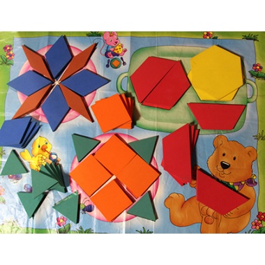 39 large Foam Pattern Blocks with large 2ft x 2 1/2ft colorful mat.