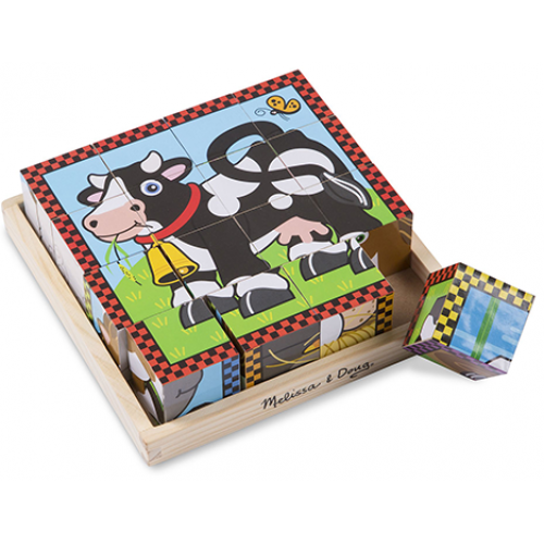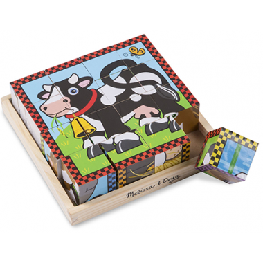 • SIX PUZZLES IN ONE: The Melissa & Doug Farm Cube Puzzle is an easy-to-play-with six-in-one puzzle. It includes 16 cubes decorated with 6 favorite farm animals and a convenient durable wooden tray.